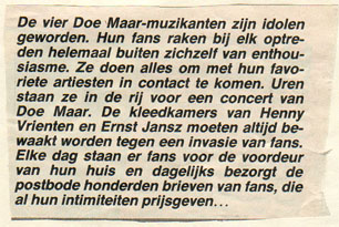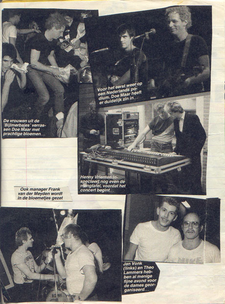 De roddelpers maakte er nu helemaal een potje van door alleen maar verhalen verteld door derden (of verzonnen) te plaatsen. Groot was dan ook de verbazing dat Doe Maar ineens aan het optreden was. Plaats van handeling : De vrouwengevangenis van de Bijlmer. |
